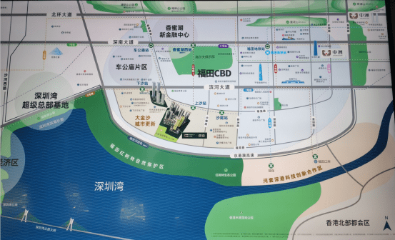 中洲湾迎海(中洲滨海华府二期)位于福田大金沙片区,邻近7号线上沙地铁站,是中洲上沙村旧改的住宅部分。整个中洲湾分四期开发,涵盖住宅、公寓、写字楼、酒店及商业等业态。