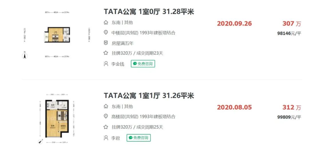 而自“7·15”新政出台之后,同样是TATA公寓,相同面积段户型成交总价为307万-312万元,总价下跌118万元,降幅高达38%。