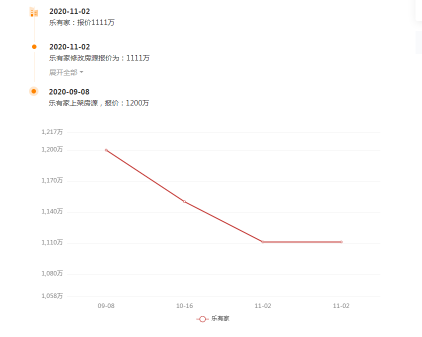 而事实上,这套房源从9月8日起就一直在降价,已经降了将近90万元。