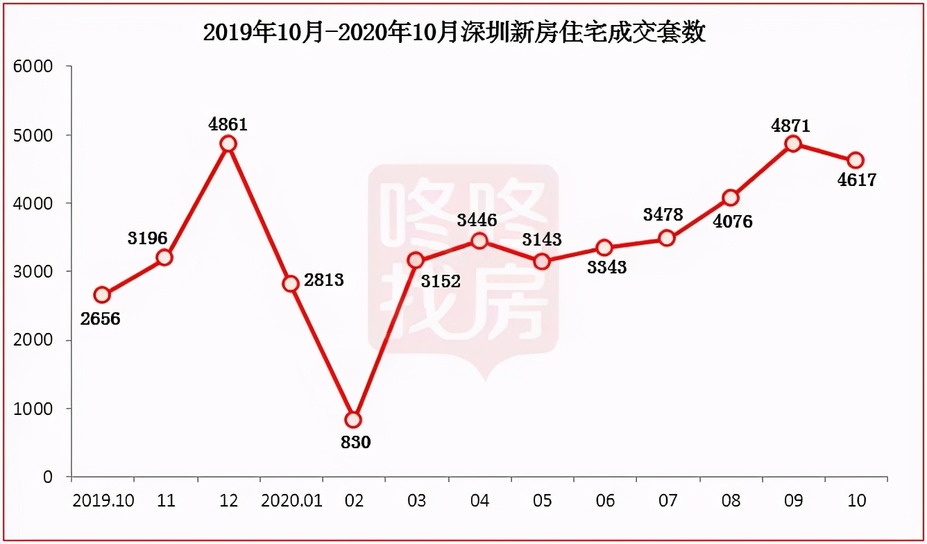 供应活跃之下,深圳新房市场被彻底引爆,8月、9月、10月新房住宅成交量均超过4000套。
