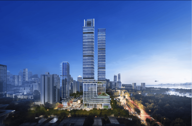 深圳龙光总部中心项目位于深圳市南山区,建设内容为3栋超高层以及10栋商业裙房、地下商业、独栋商业、地下车库及设备用房等,总建筑面积39.28万平方米,其中超高层建筑高度分别约为A塔255米、B塔262米、C塔155米,建设规划为集研发、办公、商业等多元功能为一体的城市综合体。