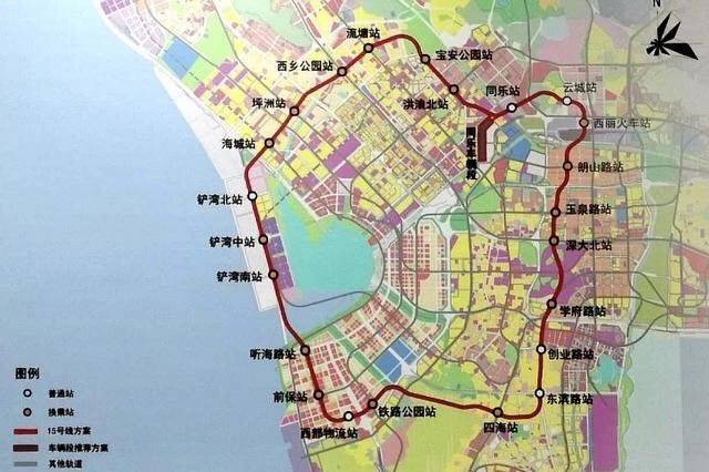 深圳地铁15号线起于西乡、终至前海,连接南山科技园、宝安中心、后海、前海等重要片区,支撑西部发展,覆盖南山科技园南北向交通需求走廊。