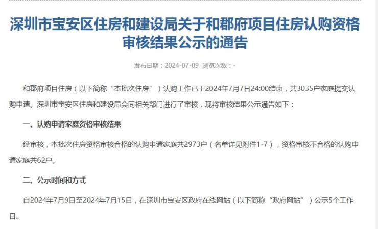 2973户!宝安人才房天健和郡府公布认购合格名单
