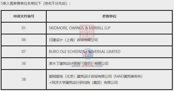 这个项目设计的吸引力非常大,根据5月29日公布的资格预审结果,5家入围参赛的设计公司都是国际顶尖设计公司,能吸引这么多国际顶尖公司一起参赛,还是比较少见的: