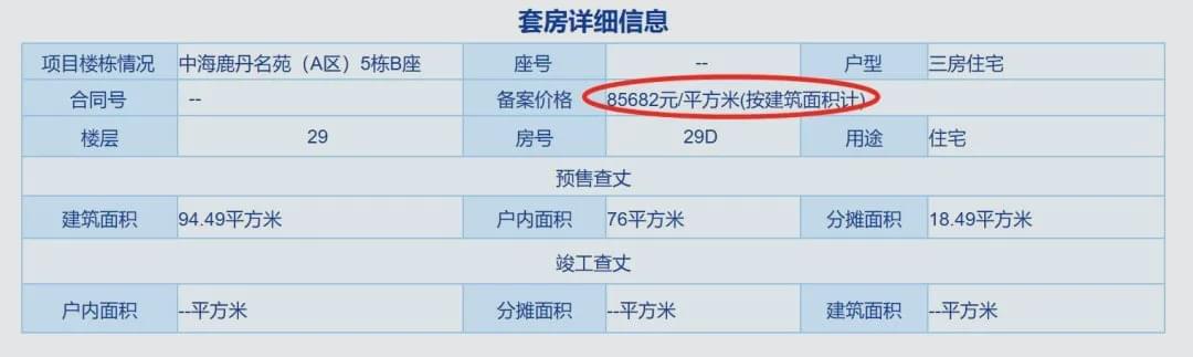 2018年6月,中海天钻项目最后一批毛坯房拿到预售证,共约44套房,备案较低单价71682元/㎡,较高单价85682元/㎡,均价7.88万元/㎡。
