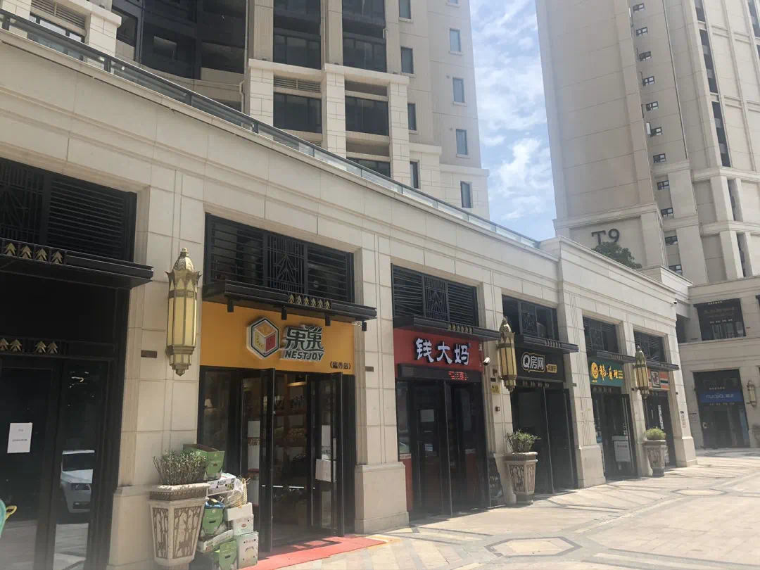 楼下的底商很多都未开业,只有零零散散的小超市、小食店,最多的是中介门店。高端商业,也只越过滨河大道才能达到的万象城和金光华,与其豪宅身份极为不搭。