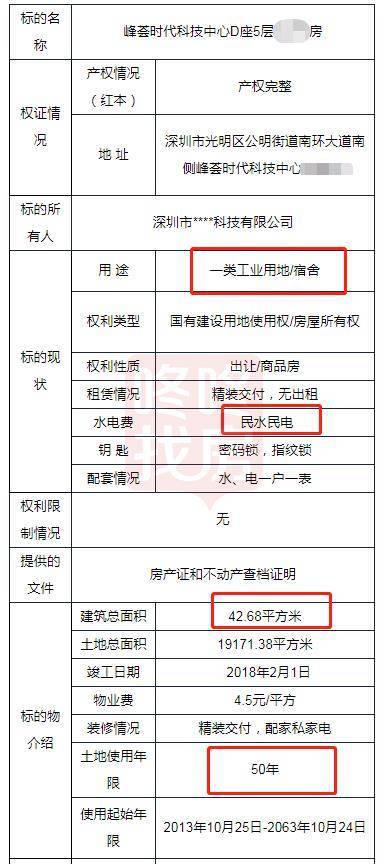 2套房源均为43平一房一厅小户型,从资料可以看到,奥园峰荟这2套房源为工业宿舍,50年产权。