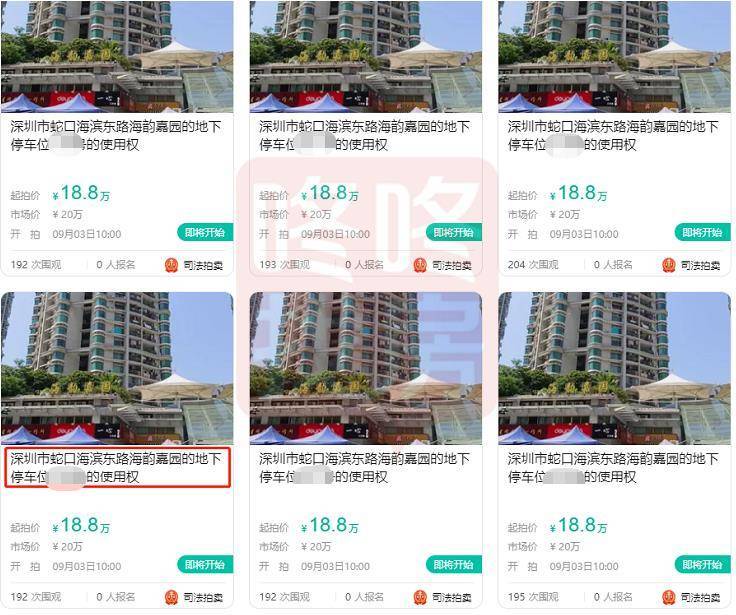 另外,深圳挂出150个蛇口某小区的停车位使用权,起拍价18.8万元,但要求比较严格,需要是小区业主才能购买。