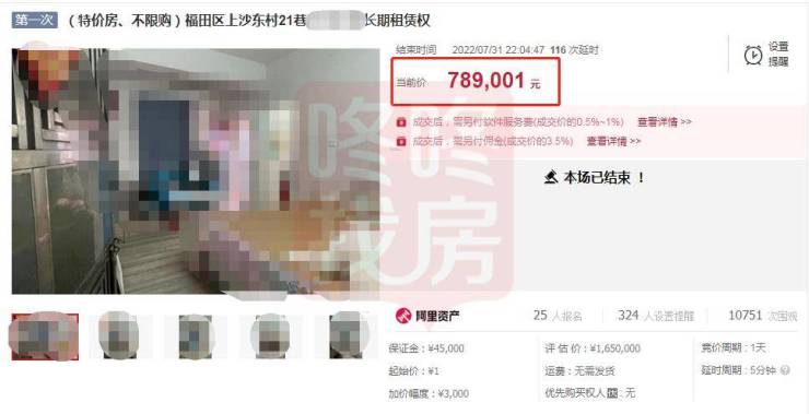 深圳频现“1元起拍房”!福田上沙一30平农民房使用权,拍出78.9万