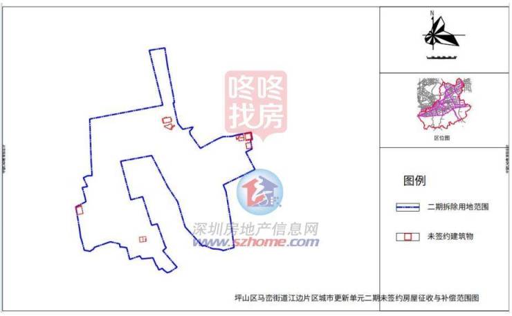 坪山马峦街道江边片区城市更新单元继一期东关珺府2020年推售后,二期近日有了实质进展,二期钉子户也要征收了!在近日公布钉子户的征收补偿方案!