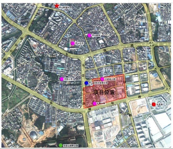 江边片区城市更新单元位于坪山区马峦街道江岭社区,东临江岭路,西靠马峦北路,南临东城环路,北接远香路。
