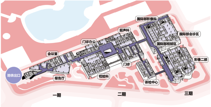 充分利用地形特点,合理布局医疗建筑。通过科学规划院区交通及出入口,实现人车分流,使人流、物流、信息流有效融合、便利衔接,保证医院流线的科学管理以及整个建筑的感染控制。项目以科学的布局、合理的交通、富有特色的环境景观,创造高效、优美、便利的就诊和住院环境。