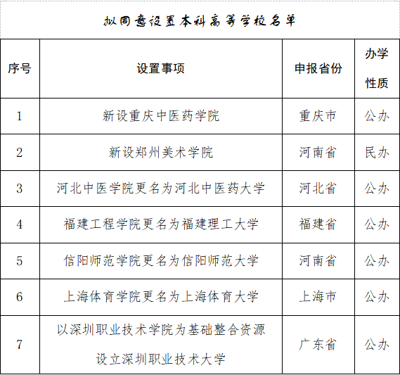 教育部:拟同意设置深圳职业技术大学等7所本科高校
