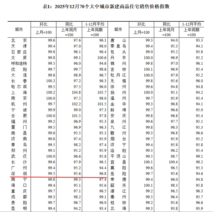 1月19日,国家统计局公布2025年12月份70个大中城市商品住宅销售价格,数据显示70城环比总体下降、同比降幅扩大。