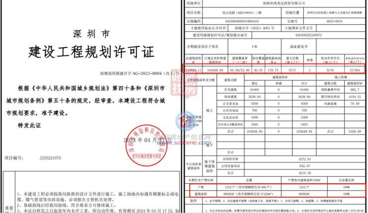 其中A823-0919地块,用地面积约15319.43㎡,总建面约113031.11㎡,总户数1212户,其中可售商品房612套,公共租赁住房600套,公租房在小区的2栋三单元,2栋三单元为55层;目前项目已经出地面十几层,绿化率40%,地面最高层数57层。