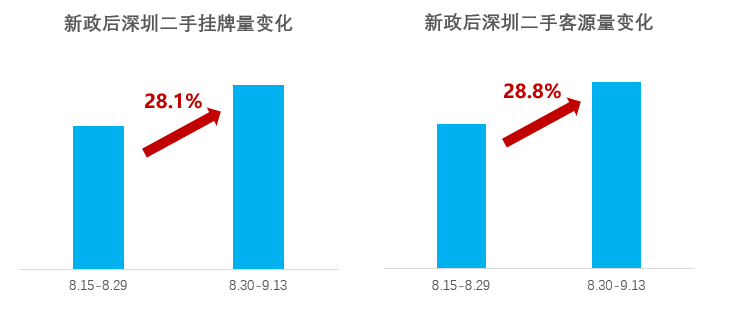 据深圳贝壳研究院统计,新政后15天新增挂牌量环比增长28.1%、新增客源量环比增长28.8%,反映了在利好政策推动下,买卖双方入市更加积极,为后市成交量上行提供有效支撑。