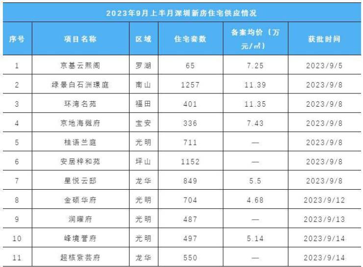 据统计,9月截至发稿前(9月15日),深圳共有11个项目(包含2个人才房项目)取得批售,合计供应住宅7009套,环比增长325.8%,创今年以来月度上半月住宅供应量新高。