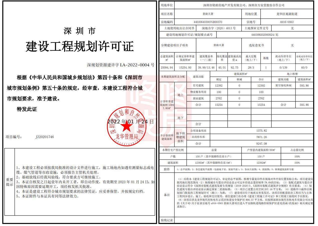 近日,深圳市规划和自然资源局龙华管理局发布关于景勋天著(A916-0563)建设工程规划许可证的通告。