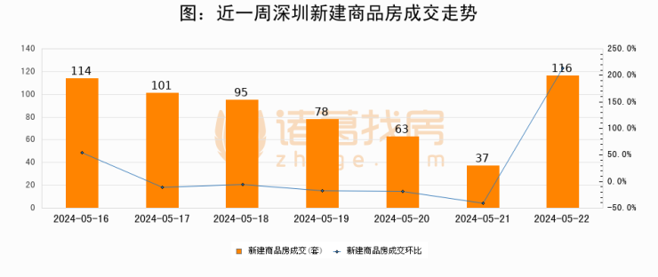 【深圳成交日报】05月22日新房成交116套、二手房227套;涨价房源298套