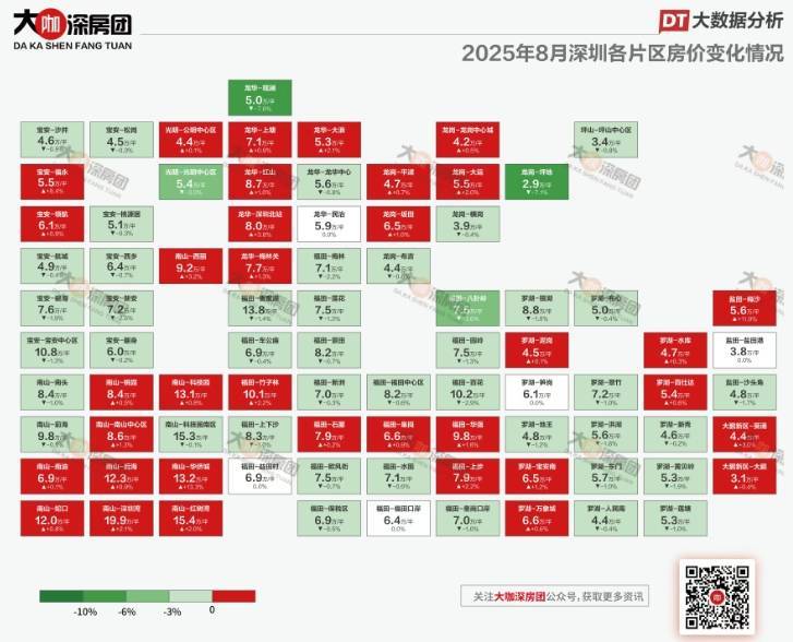 8月深圳各片区房价变化,挂盘均价上涨片区增加至35个