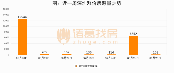 根据诸葛找房数据显示,深圳24小时涨价房源量为152套,较06月25日减少6500套,环比下降97.7%。与此同时,涨价房源占比小幅回落,对于购房者来说是一个入市窗口期,购房者可抓住时机入市。