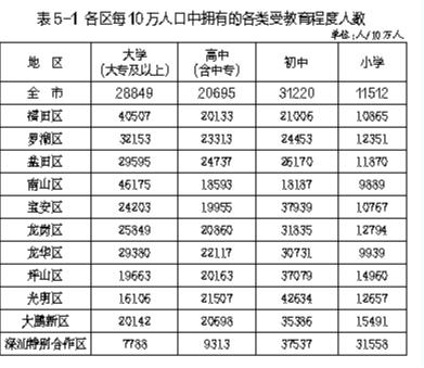 根据第七次全国人口普查结果,现将2020年11月1日零时我市11个区(包括大鹏新区、深汕特别合作区,以下简称区)的人口受教育基本情况公布如下:
