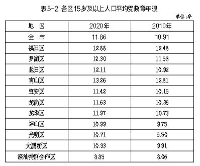 与2010年第六次全国人口普查相比,全市常住人口中,15岁及以上人口的平均受教育年限由10.91年提高至11.86年。