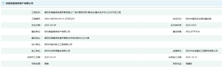 日前,福田香蜜湖京蓉混凝土厂城市更新项目公示坑基支护施工许可证,项目已于2025年3月动工,本工程计划2025年10月31日竣工。