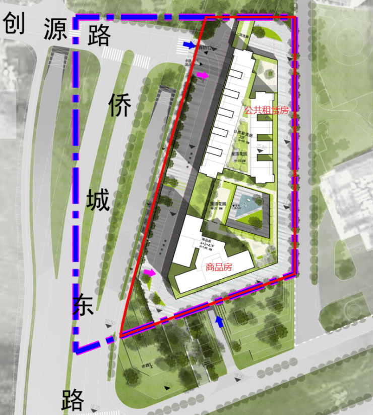 根据项目规划草案,将建一栋商品房(4+2+41F)、1栋公共租赁住房(32F)。
