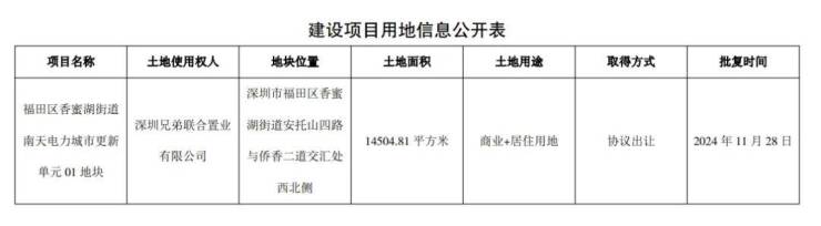 公开资料显示,南天电力旧改项目的实施主体为深圳兄弟联合置业有限公司,该公司由深圳市合佳盈投资有限公司、深圳市南海一诺实业有限公司以及深圳博邦和投资有限公司共同持股,持股比例分别为48%、32%和20%。