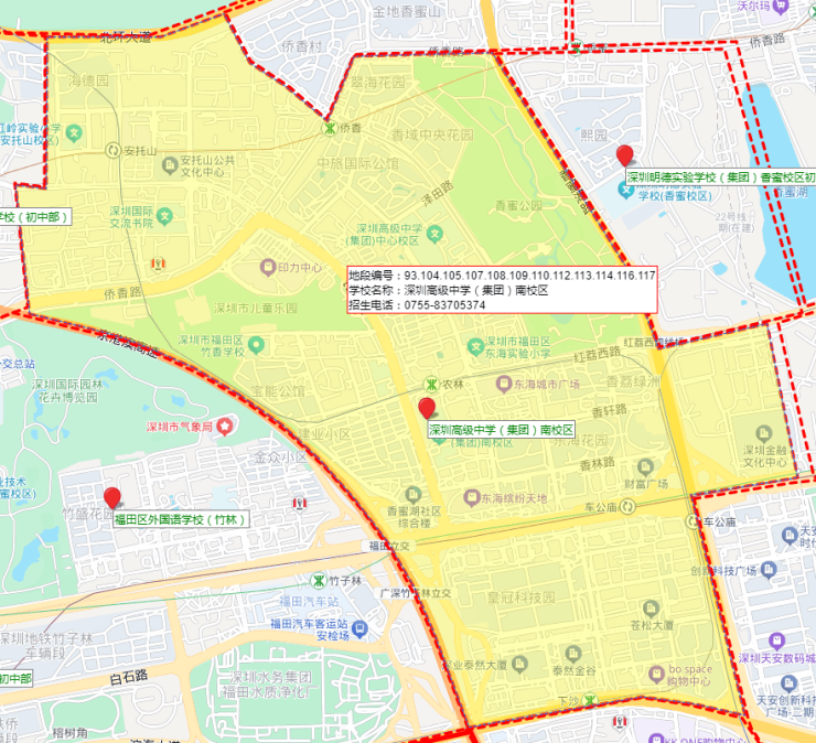 值得一提的是,项目周边教育资源丰富,福田教育局2024年学区划分,项目小学学区为福田区实验教育集团侨香(南校)学校、中学处于深圳高级中学南校区范围。(具体以当年区教育局划分为准)