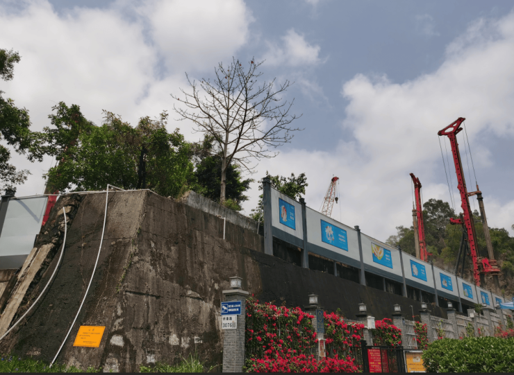 京蓉混凝土厂城市更新项目工地大门就在道路工程右侧,@搜狐焦点深圳 到达项目现场时正处于午休时段,没有听到施工作业的机械声,但可以看到多台打桩机。