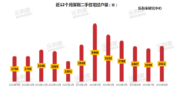 乐有家研究中心监测显示,8月深圳二手住宅过户成交2422套,环比上涨7%。虽然没有重返3000大关,但相信认房不认贷的推行能逐渐助推市场上升,回到4000-5000套的稳定水平。