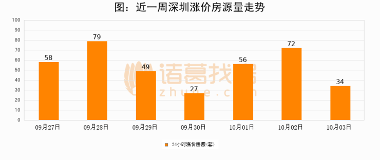 根据诸葛找房数据显示,深圳24小时涨价房源量为34套,较10月02日减少38套,环比下降52.8%。与此同时,涨价房源占比小幅回落,对于购房者来说是一个入市窗口期,购房者可抓住时机入市。