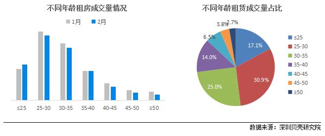 据了解,年后来深求职的年轻人增加(如大学生),催生大量新租需求,为成交量的增长提供重要支撑。数据显示,租房群体中,租房年龄段主要分布在25-35岁,成交占比分别为30.9%(25-30岁)、25%(30-35岁),其中2月仅25岁以下的租赁成交环比增长14.3%。