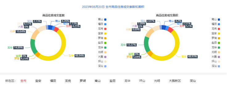 8月20日新房住宅共网签47套。宝安23套;福田1套;龙岗2套;罗湖2套;南山2套;盐田0套;龙华7套;坪山4套;光明5套;大鹏0套;深汕1套。
