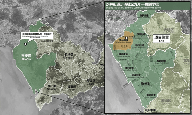 步涌社区九年一贯制学校位于深圳市宝安区沙井街道。本项目希望通过公开公平的设计招标,优中选优,选出既能落实宝安区教育发展理念、又能与周边城市环境融合共生,且面向未来的学校设计方案。