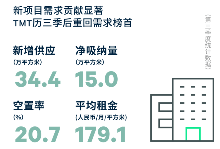 优质写字楼市场:新项目需求贡献显著,TMT三季后重回需求榜首