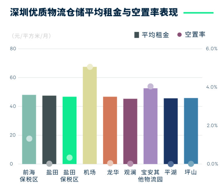图四:深圳优质物流仓储平均租金与空置率表现