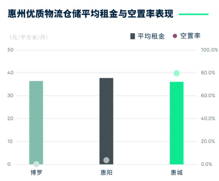 图六:惠州优质物流仓储平均租金与空置率表现
