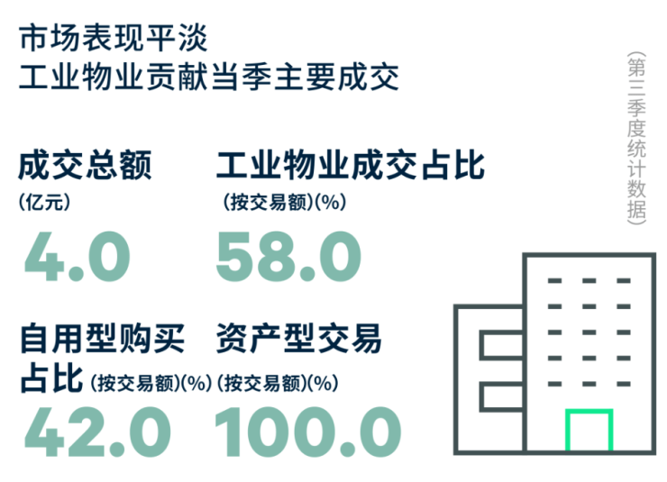 投资市场:市场表现平淡,工业物业贡献当季主要成交额