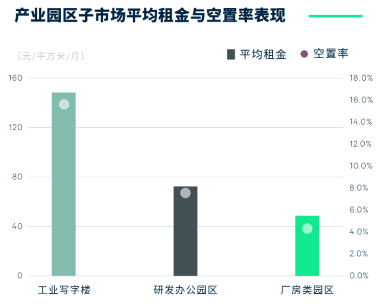 图五:产业园区子市场平均租金与空置率表现
