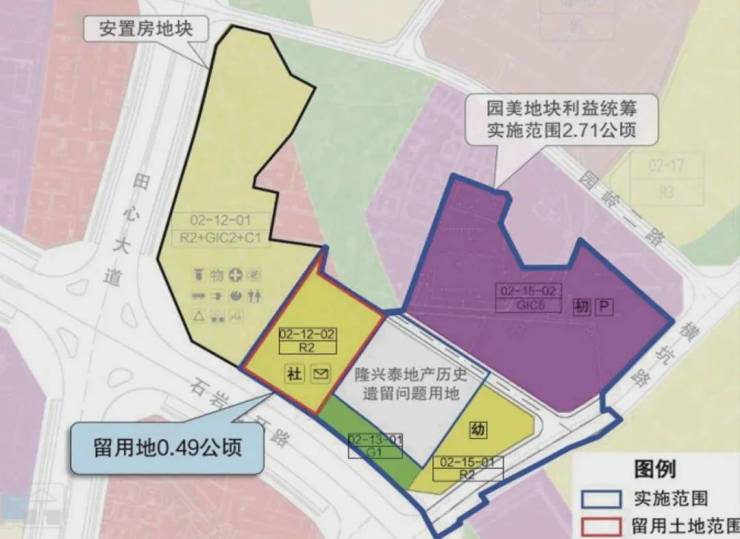项目实施范围12.9万平方米,留用地总用地面积1.85万平方米,共2个地块。
