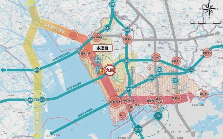 九围国际总部区面积约9平方公里,未来将重点集聚有全球化战略的企业功能性/区域性总部、国际组织和机构,其中核心区面积4.6平方公里,包括2.6平方公里国际总部先导区(以下简称“先导区”)、2.0平方公里国际服务街区。先导区是其中重点部署总部、产业功能的核心承载区,是深圳向湾发展前沿地区的稀缺增量空间。(具体以官方信息为准)