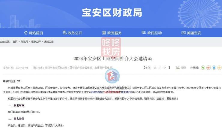 8月9日,宝安区将召开土地空间推介大会。