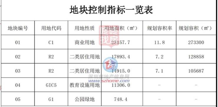 商业用地面积约2.3万平,规划容积面积约27.3万平,规划容积率11.8;