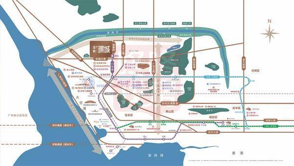 (1) 轨道方面:项目与11号线碧头站接驳,地铁11号线是深圳速度较快的地铁线,串联起了宝中、前海、深圳湾、福田中心区等深圳核心区域。从碧头站出发,可快速到达机场、前海、福田。同时可一站到达松岗站,通过换乘6号线可串联起光明、龙华、福田等区域;通过在建中的12号线延长线也到达空港新城、福永、新安、南山、海上世界等区域;穗莞深城际,一期2019年已开通,可快速到达广州新塘南站;二期工程经西乡、宝安、直达前海,预计2024年建成。