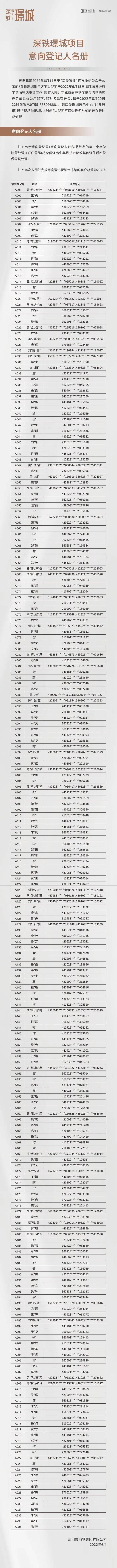 6月20日,宝安深铁璟城发布诚意登记名册,入围并完成保证金冻结客户总数为234批。