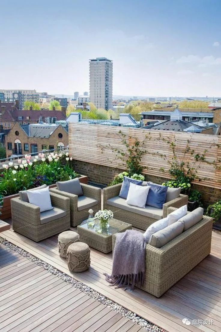 打造舒适漂亮的露台,首先就要搞出一块可以休闲放松的舒适区,周末都可以在这里窝着,阅读、逗猫、发发呆。