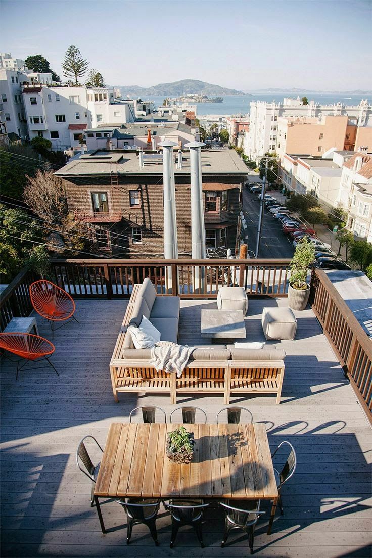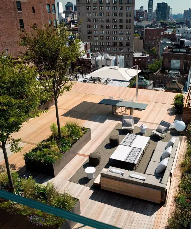 如果露台面积较大,不仅可以放松休闲,也可以在露台上摆放餐桌,天气好的时候,在天台上吹吹风,吃吃饭,聊聊天,看着满眼绿色,吸着新鲜空气,实在是种享受。